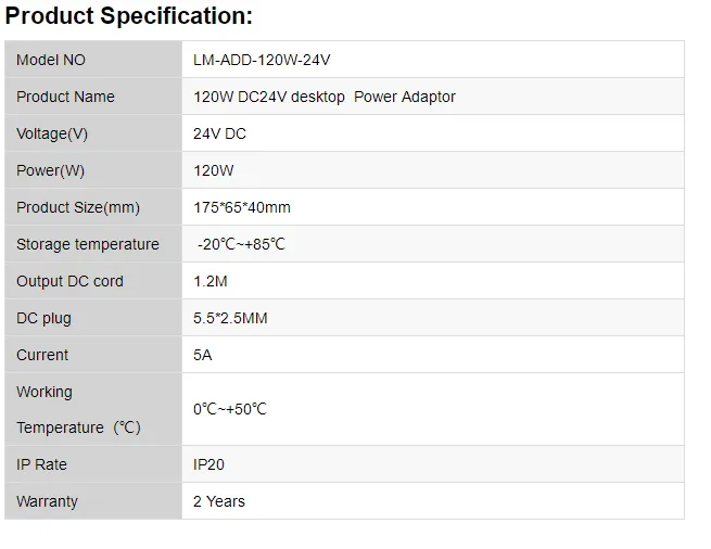 120W DC24V desktop Power Adaptor