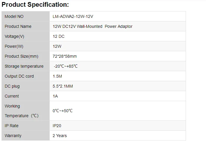 / 12W DC12V Wall-Mounted Power Adaptor