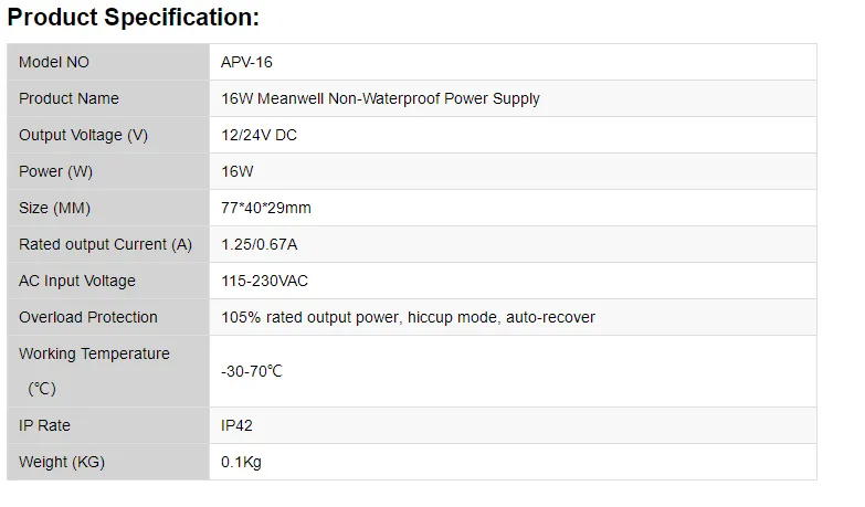 / 16W Meanwell Power Supply for Led Strips