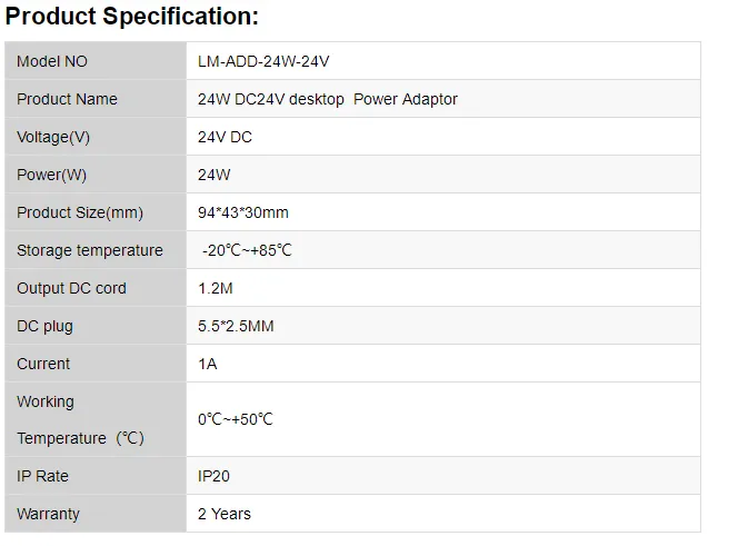 / 24W DC24V Desktop Power Adaptor