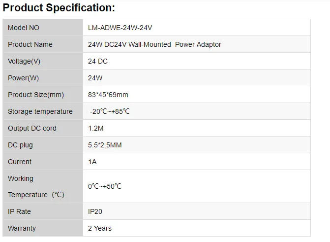 / 24W DC24V Wall-Mounted Power Adaptor