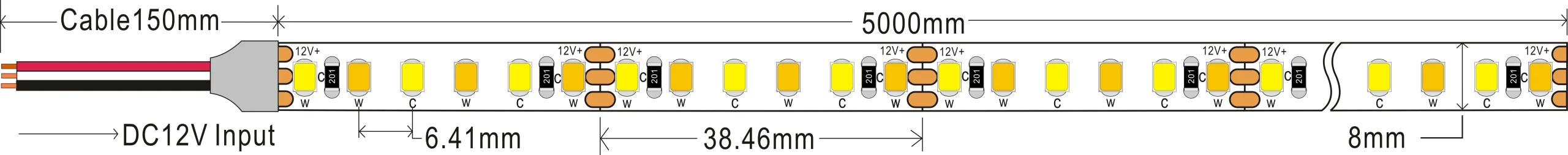 / 2835 156leds/m CCT 12V 8MM