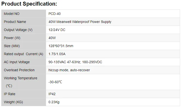 / 40W Meanwell Power Supply for Led Strips (waterproof)