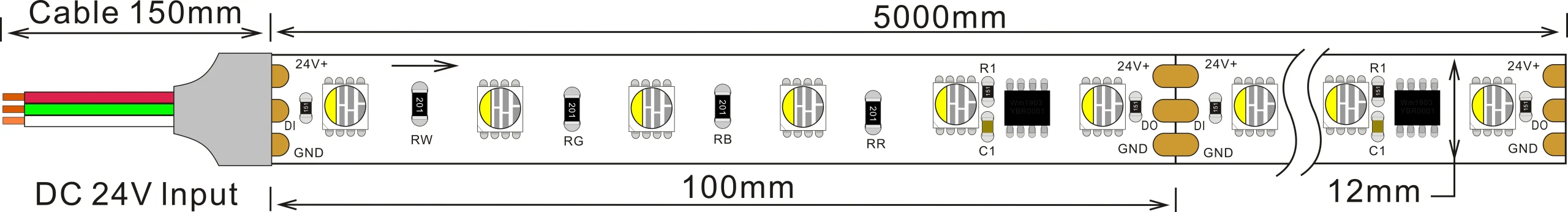 / 5050 4in60leds/m RGBW 2814IC 24V 12MM