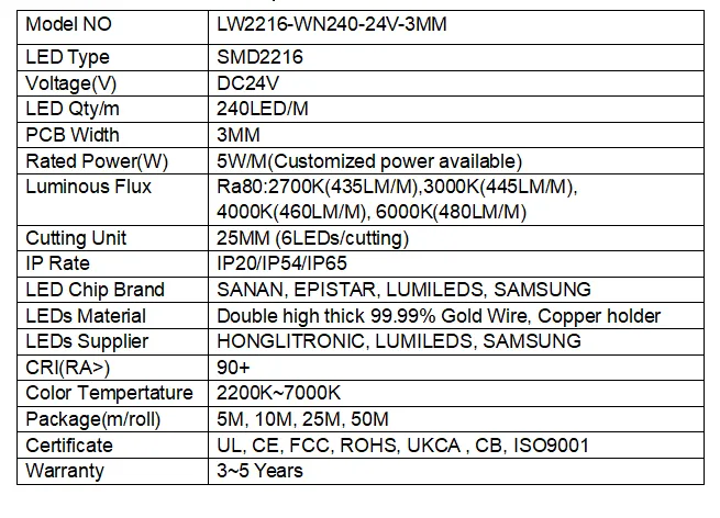 / 2216 240leds/m 24V 3MM