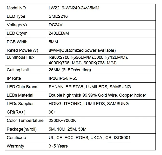/ 2216 240leds/m 24V 5MM