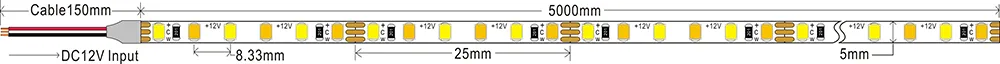 / 2835 120leds/m CCT 12V 5MM