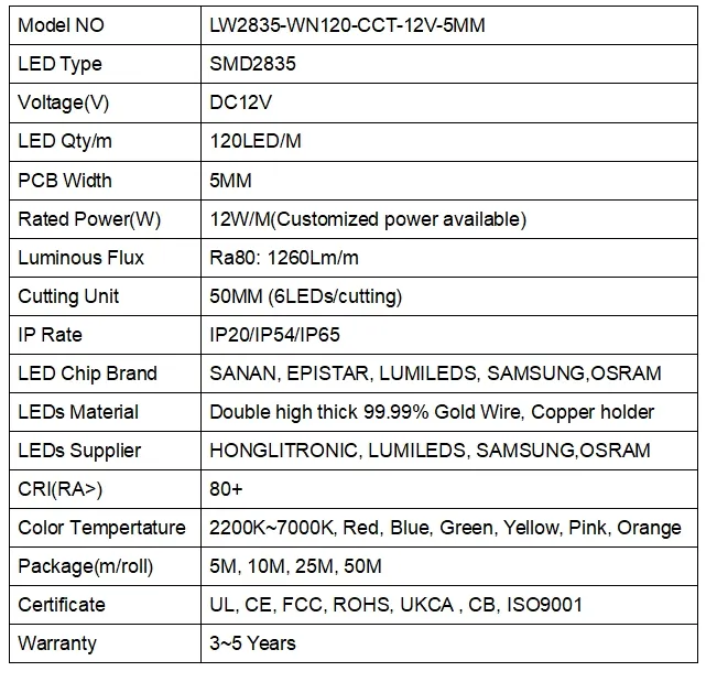 LW2835-WN120-CCT-12V-5MM