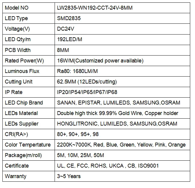 LW2835-WN192-CCT-24V-8MM