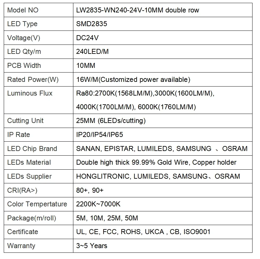 LW2835-WN240-24V-10MMdouble row