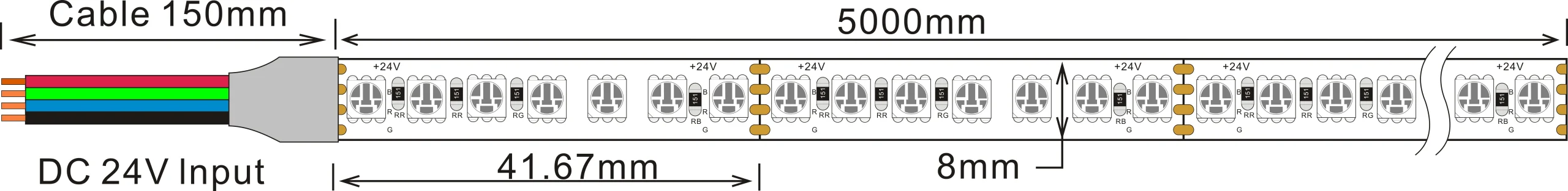4040 168leds/m RGB 24V 8MM