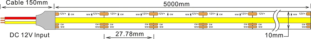 COB 576leds/m CCT 12V 10MM CRI≥90